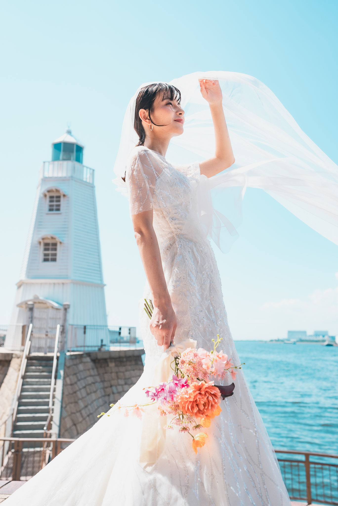 目の前に港が広がるテラスで愛犬とのウェディングも叶う